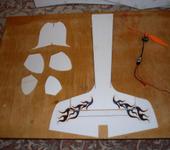 За основу взят Клик, самолет зачетный, испортить его сложно. Материал – потолочка. Дешево, сердито и доступно. Клей – Титан. Моторка планировалась Парк 300, батареи 350-450 мА\ч, рульки НХТ 500 и НХТ 900.