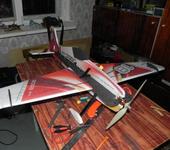 За 8 часов неспешно собрал. Полетная масса получилась 550 грамм с аккумулятором 1550 мАч. Сервы вклеил сразу с металлическим редуктором, чтоб надолго, ато менять их замучаешься выколупывать из самолета.
