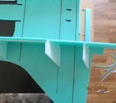 Едем дальше.Та как шпангоуты стоят под углом вершнюю и нижнюю поверхности обрезаем под углом,под линейку,заодно корректируем высоту,чтоб сверху лягла 6мм крышка.