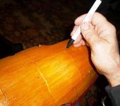 Пилим лобзиком напополам. Бором выбираем сердцевину,как желток у яйца.