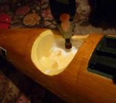 Настало время освободить в кокпите место для пилота. Для этого хорошо подходит дремель с наждачной насадкой. Отлично врезерует пену. Затем при помощи ножа,отвёртки и ненормативной лексики(так как ЕРР материал тягучий, тянешь подрезанный кусочек,а он норовит обратно прыгнуть) выбираем пространство до бальзовой корочки.Убираем пену и перед пилотом до пулемётов. Боковины обшиваем той же 1мм бальзой. На ветровом стекле накалываем шилом “заклёпки”,