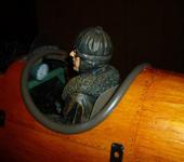 По моему твёрдому убеждению, даже самая высокодетализированная копия без экипажа выглядит неестественно,а в полёте по меньшей мере странно. Поэтому пилот должен ВЫГЛЯДЕТЬ.К модели приложен странный пилот. Гораздо меньшего масштаба и явно рахитичного сложения.Вместо него выписали нормального масштабного немца.Кстати,фигурка внутри пустотелая и ничего не весит. Но хотелось бы пилота несколько увеличить(до пояса) и дать ему ручку управления в руки. Займёмся этим. Всё хорошо видно на фото.