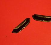 Разрезаем заготовку пополам и получаем два дефлектора. Накалываем шилом “заклёпки”,красим и устанавливаем на место.