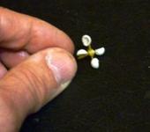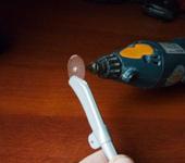 Сверлим отверстия и циакрином приклеиваем на крестовину. Вставляем в кусочек подходящей трубочки и расплавляем снизу ось(законтриваем).