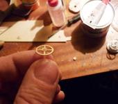 Для изготовления самой крестовины наилучшим образом подошла маленькая шестерёнка от часов. Пришлось только запрессовать новую ось из пластика.(От другой шестерёнки). Отрезаем лишнее.
