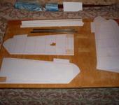 Решил не мудрить и просто склеил рули-элероны из 2х слоев потолочки. Клеил “Титаном”, разбавленным метиловым спиртом до густоты жидкой сметаны. Мазал кромки и неск. точек в середине. “Ушло” примерно 10 кубов клея. Многовато… Вообщем, ничего интересного, все как обычно.