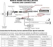 Miko, регулятор хода коллекторного мотора имеет 2 двухпроводных кабеля для подключения к мотору и к ходовой батарее (при подключении не перепутать какой куда!) и трехпроводный со стандартным разъемом, который небходимо подключить к приемнику в канал газа/throttle. По последнему кабелю передается питание приемника и серв от стабилизатора, встроенного в регулятор хода (т.н. BEC), и управляющий сигнал от канала газа на регулятор хода, управляющий оборотами мотора. На приведенном ниже рисунке (взят из руководства к вашей модели, с. 11) все довольно понятно показано.
