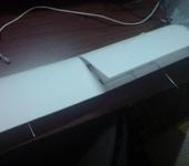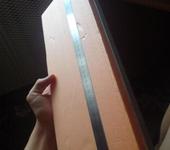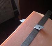 Затем накинул его профиль на боковине. Железную линейку железный уголк по крайним точкам налепил на двухсторонке вдоль куска пеноплекса