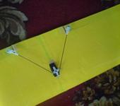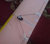 крыло доделал, серву закрепил сверху, в ущерб копийности, петли из армированного скотча)