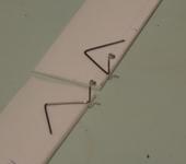 Завершил сборку крыла. Кабанчики элеронов согнул из проволоки. Ушки запаял и просверлил нужным сверлом. Потом вклеил кабанчики между двух панелей элеронов, предварительно наклеив на каждую панель кусочек тонкой ткани типа марли, чтобы распределить нагрузки на большую площадь (фото получилось не резким - выкладывать не буду). Сборка непосредственно на крыле, потому что петли в крыло уже вклеены, а теперь их нужно вклеить еще и в элерон. Вес консолей без рулевых машинок: правая - 152 грамма, левая - !53 грамма. Превысил предполагаемую величину в сумме на 5 грамм. Думал выйдет 300.