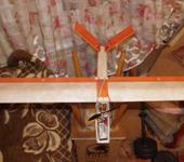 Я обмотал тяги скотчем,поскольку ни бамбучки,ни карбонки у меня нет.А ставить машинку ближе к хвосту не хочется-и так очень задняя центровка получилась.Посмотрим как летает и, возможно поставлю классическое оперение.Модель очень ремонтопригодна.