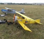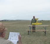 16 июня поучаствовали с Сикорским в Чемпионате Крыма по полукопиям.Заняли пятое место из шести.Перед полетами ветер отсутствовал, но к полетам начал постепенно нарастать.Летая по жеребьевке шестым попал на пик.Программу отлетали правда швыряло прилично.Во втором туре на взлете порывом перевернуло пришлось срочно переклеивать “морду” эпоксидкой-пятиминуткой.Заодно сделали выкос вправо вниз.В третьем туре ветер поутих и Сикорский смог показать копийный полет.Самому понравилось. А пятое место-следствие малого налета на этом самолете да и в процессе соревнований пришлось играться разными акками и винтами.