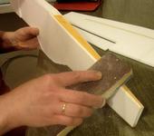 Возвращаемся к крылу. Наставник нарисовал мне профиль крыла. И я наждачкой попыталась получить нужные поверхности. На передней кромке - плавное скругление.