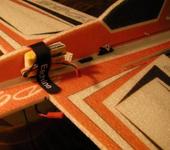 А вот насчет батареи - все зависит от приоритетов. Во-первых, я люблю крепить батарею намертво, поэтому от липучки давно отказался. Во-вторых, батарея составляет ~20% от всего веса, а такой “кирпич” важно расположить как можно ближе к оси самолета. Снизу это сделать невозможно, т.к. там мешает управление элеронами. А сверху легко, используя под ремень имеющуюся прорезь под машинку элеронов. Кроме того смещение ЦТ в бок от оси самолета частично компенсируется расположенными по диагонали регулятором и приемником. На практике это дает быстые и ровные вращения, особенно хороша бочка.