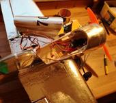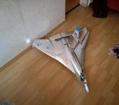 Модель с толкающим винтом 900 размах, вес полный, полетный 500, тяга с винтом 9/6 где то кило с половиной. Тест показал кило семьсот, но я скептиш,т.к. стенд был —просто весы, на которые давил мотор с винтом. Вторая модель размахом тоже 900, полезный вес 350, тяга мотора около 800 грамм с винтом 10/4,5. Время на постройку ушло неделя, правда с помощником и не только по вечерам. У сына каникулы,я с простудой забил на работу. Советы нужны нам по покраске скотча, никогда не делалась такого. Но люди говорят можно, и краска держит. И ещё. Пушер имеет некий положительный v крыла( идея была после просмотра фильма «день независимости 2», там истребители имеют такой, но вот как это отразится на пилотажных качествах ? Не вялые ли бочки будет делать такой«истребитель»? Если вообще полетит подобное? Из не ламинированной ничем пены:(