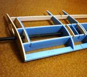 Лонжерон - бальза 5мм, нервюры из тройки. Вклеены бобышки из бальзы в местах крепления петель и расчалок.