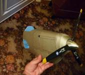 Детали из подложки вырезаем ножницами, иногда ножом. Подложка имеет такое свойство: сама по себе хрупкая. Но при нажатии и разминании становится эластичной. Детали очень хорошо формуются на краю стола. Прямо на остром краешке заготовку разминаешь и придаёшь ей нужную форму. Что-то начинает вырисовываться. Примеряем на готовую переднюю часть винт. Навешиваем на штырьковые петли руль направления. Устанавливается машинка руля направления и её боуден.Для заполнения швов я использую вот этот клей. Он быстро сохнет и хорошо шкурится. Также им хорошо шпаклевать дефекты на подложке. Не даёт усадки.
