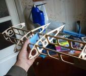 Лонжерон - бальза 5мм, нервюры из тройки. Вклеены бобышки из бальзы в местах крепления петель и расчалок.