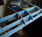 Лонжерон - бальза 5мм, нервюры из тройки. Вклеены бобышки из бальзы в местах крепления петель и расчалок.