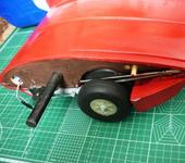 К дужке из 0.8 нержавейки приварен шток, вставлено колесо диаметром 50мм и ось зафиксирована клеем.