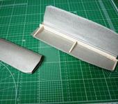 Ничего лучше не придумалось, как разрезать его просто пополам и половину приклеить на центроплан, половину на консоль. Задний обтекатель за колесом остался целиковым и приклеен на центроплане. Консоль просто вдвигается под него. А с этим ввиду его хлипкости такое не проходит. (Кстати, в дальнейшем, рассматривая архивные снимки, обнаружил, что на настоящем самолёте передний обтекатель тоже разрезной).