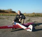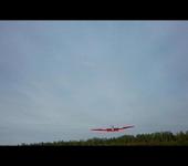 Легендарный самолёт совершил в этом году последние два полёта. Были опробованы новые ретракты большего размера. При убранных шасси центровка становится немного задней. Хотя самолёт демонстрирует верх устойчивости и управляемости на суперсрывных режимах, грамм 50 в нос для комфорта надо догрузить. А так летает прекрасно даже в ветер до 6 м/сек. На посадке в ветер трудновато, при малейшем движении рулём высоты сразу взлетает.