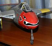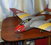 Вампир от ХК. Нравится мне этот самолёт вот и приобрёл его модель. Хотя не очень хорошо отношусь к импелерным. Но летал Вапир вполне адекватно, требовал для этого 4s батарейку (все другие летали на 3s). Установил ретракты с управляемым передним колесом. На основных стойках развернул ретракты и переделал колёсные ниши. Что бы колёса убирались по копийному - от фюзеляжа. Раскраску придумал и нарисовал сам.