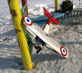 Ньюпор-11 чей он не помню, покупал с “Спорт и хобби”. Внешне красивый, аккуратно сделанный. Есть у меня слабость к самолётам начала прошлого века. Почти всегда в авиапарке есть модель того периода. Даже “закрываю глаза” на сложность компоновки, пилотирования и что при посадке любят капотировать. Летал Ньюпор предсказуемо, без изысков. Запомнился большой выкос мотора. Попытка его уменьшить реально снизила лётные качества.
