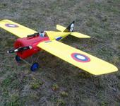 Следующая модель Де Хевиленд с толкающим винтом. Поработал над внешним видом. Настоящая полотняная и алюминиевая обшивка на гондоле, внешние качалки с тросиками, пилот, пулемёт и прочее. Минус только один - он не летал. Полное фиаско. Задняя центровка. Как ни сдвигал всё вперёд, но не получилось.