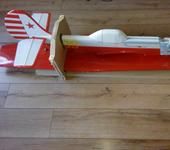 Всем привет! Как уже писал, при построении самолета использовал пеноплекс толщиной 20 мм. и подложка под ламинат 3 и 5 мм. Для лонжерона крыла использовал обыкновенные деревянные линейки. Нервьюры вырезал из пеноплекса. Крыло обклеено подложкой серого цвета-3 мм. Лобик крыла гнул под промышленным феном. Без прогрева подложка рвется. Руль направления и стабилизатор склеен из двух слоев голубой подложки. Петли использовал обычные штырьковые. Фюзеляж склеен из 2-х половинок пеноплекса. Клеил обычным клеем ТИТАН. Прилагаю фото по которым можно представить конструкцию самолета.