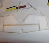 Подниму тему. Сделать удалось совсем чуть чуть, приклеил еще 2 стрингера из сосновой рейки 4х4, все подсохло и заметил, что от них повело геометрию фюзеляжа, пришлось оторвать и вклеить повторно. Далее начал обшивать, решил начать с низа, поскольку нижними пластинами удобно контролировать геометрию. Далее приклеил две лицевые панели фюзеляжа.