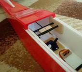 Ну, она приклеена к дну отсека из двойной потолочки, снизу ещё пеноплекса сантиметр и двойные боковые стороны, на рисунке вид сверху у спереди. Моторама показана желтым. Красным - места склейки с фюзом. Можно ещё доделать, думаете стоит?