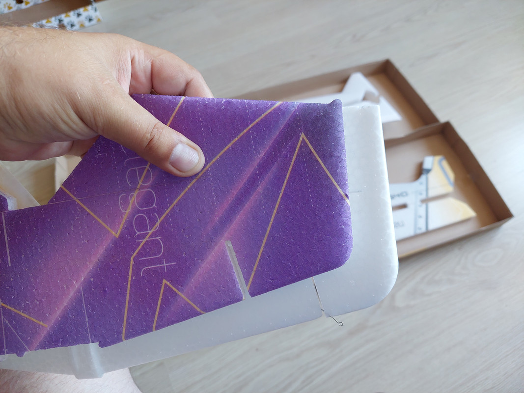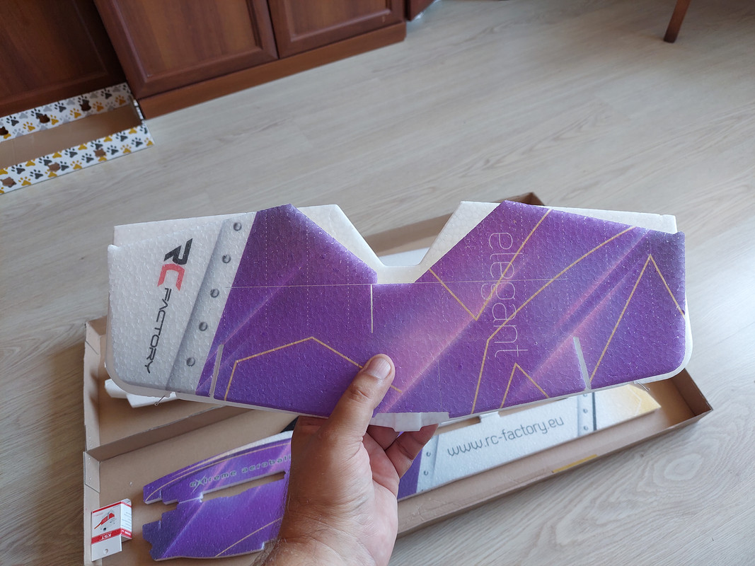 В крыльях и стабе снизу есть отметки под карбоновые откосы, самих откосов нет в комплекте. Окраска другая и пленка уже нарезана.