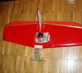 перетяжелил за счет самодельной мотораммы из оргстекла и заклееных скотчем элеронов из голубого пенопласта. пузо прикрывает лист гофропластики. немного задняя центровка. летает как бешеный. сделал как 2 самолет (первый фан флай) использую в зависимости от настроения и метеоусловий. планирует только на большой скорости и немного тяжел при посадке. в целом очень веселенький такой самик.