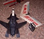 Доделан и облётан. Масса RTF 400 грамм. облет показал что speed300 сюда не годится (хотя отношение тяги к весу гдето 0.7-0.8) - слишком велико лобовое сопротивление. Модель МЕДЛЕННО летит в горизонте с большим углом атаки, еле-еле набирает высоту, и то, только против ветра. Хотя может дело в винте. Летал с 8*6. Другого пока нету попробовать. Что посоветуете? Может 8*4?