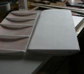 Формовал на горячей трубе, а точнее на металлической кофейной банке. Она тонкостенная, но достаточно жесткая. Просто нагревал ее обычным феном. Не знаю точно до какой температуры, но руки обжечь можно было, поэтому одел все-таки перчатки, а потом прижимал потолочку и держал пока банка не остывала. В 2-3 приема получалось придать ей нужную кривизну. Сначала ребром компакт-диска делал вдоль изгиба несколько вмятин-желобков (на фото местами видно), но в процессе выяснилось, что гнется прекрасно и без них. Потолочка обычная 4мм. в листах 50Х50.