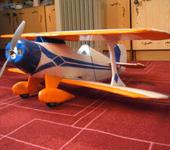 Вот я и достроил своего Питс. Вес получился 550 г. Верхние элероны пока не задействовал, вернее уже и не успею задействовать на этом самолете. Так руки чесались побыстрее облетать, что пошел на полетушки в ветер, примерно 5-6 м в сек. Мотор стоял 1100 об с винтом 10-5. Тяга была точно больше 1. Короче унесло его на фиг. Боролся до последнего пока не потерял сигнал. Поиски ни чего не дали. Покойся с миром приемник, батарея, сервы, куча скотча и труда. АМИНЬ.