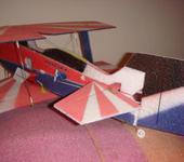 КрасотиШа!! Облееть теперь его по нормальному, и тогда вообще будет Вещь!! Как бы там небыло, но это очень удачная схема. После серьёзного креша, Получилось что он остался только на нижнем крыле, с руки он летал даже в таком положении. Хотя полётом это назвать трудно!! 😃 Но летал!!