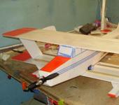 вот мое чудо. Размах 56 см. Обещал показать. Прошу заценить. Материал ЕПП 4 мм. (собственно его предшественник был из потолочки. из за конструктивных недостатков долго не прожил ) Поскольку планировалось использовать слишком разные батареи для настройки центра тяжести навешал бронзовый брусок сзади внизу. На фото видно.