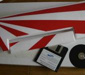 при сравнении с дискетой получается ширина крыла порядка 10 см. длина 90. 9дм*1дм площадь одного крыла 9 квадратных дециметров. их 2, значит уже 18 + фюз. . получается около 20г/дм.