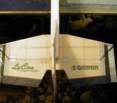 На фото сзади виден привод от сервы к элерону и тяга ко второму элерону, светодиод между верхними крыльями
