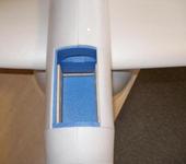 Подбрюшек можно вырезать целиком из голубого пенопласта, облегчить долблением, обтянуть и приклеить двусторонним скотчем к обтянутому крылу.