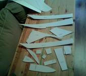 Далее - нарезал на детали, две детали - крыло и боковины кабины - не влезают на лист обычной потолочки:
