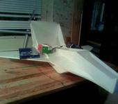 Это более простая модель, где действительно управление только рулями высоты, точнее они получаются аналогично элевонам летающих крыльев работают. Для этой модельки вообще достаточно 3-х канальной аппаратуры получается.