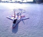 …Итак наконец-то оно полетело! Однако же пришлось примерно на 6 см сместить назад аккумулятор для подгонки ЦТ. В итоге горизонтальный полет возможен уже при примерно 60% газа. Мертвые петли, бочки крутятся нормально, элеронов, несмотря на опасения, вполне хватает. Однако же предстоит серьезный ремонт носа - первый взлет закончился полноценной морковкой - отпустил далеко модель и потерял ориентацию. Однако после обмотки скотчем самолет благополучно продолжал летать до разрядки аккумулятора: