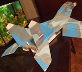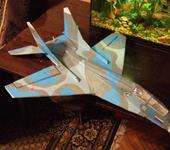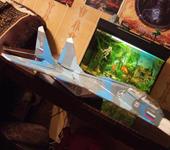 Ну вот и я покажу своё “изделие” на тему СУ-37.Чертежи взяты у известного автора на паркджет. Захотелось вот чего-нибудь “такого” ! Строиться легко и быстро. Материал 6мм потолочка, красил акрилом, да и то чтоб тока не голый весь был. Изменяемый вектор тяги как ,у автора, я делать не стал. Привод управления классический,высота-элероны. Вообщем немного отсебятинки и вот такой получился аппарат. Облетать толком не получилось,ветерок не слабый всё время.Попытка поднять модельку в небо показала : летает,но только на полном газу, достаточно устойчив, по крену резкий. Более детально пока не скажу, пропеллер надо поболее шагом поставить, дождаться погожего выходного дня, и полетать пару-тройку батареек.