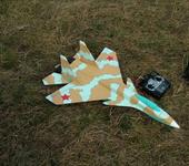 Ну вот и я покажу своё “изделие” на тему СУ-37.Чертежи взяты у известного автора на паркджет. Захотелось вот чего-нибудь “такого” ! Строиться легко и быстро. Материал 6мм потолочка, красил акрилом, да и то чтоб тока не голый весь был. Изменяемый вектор тяги как ,у автора, я делать не стал. Привод управления классический,высота-элероны. Вообщем немного отсебятинки и вот такой получился аппарат. Облетать толком не получилось,ветерок не слабый всё время.Попытка поднять модельку в небо показала : летает,но только на полном газу, достаточно устойчив, по крену резкий. Более детально пока не скажу, пропеллер надо поболее шагом поставить, дождаться погожего выходного дня, и полетать пару-тройку батареек.