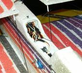 Три РМ GWS Pico были заменены на четыре “пилотажевских” C-01CT. Две установлены для раздельного привода элеронов левой и правой бипланных коробок. Для их защиты был изготовлен увеличенный обтекатель-“совок”.