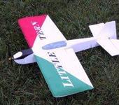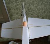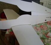 И даже летал и не плохо, но для меня резковат был, я только учился летать. Лонжерон только был тоже из потолочки (он кстати досих пор жив, детки закрепили элевоны, отцентрировали грузиком в носу и пускают как планер. Кстати летает тоже не плохо). Да и хотелось чето по класической схеме. А так вобще такие самолеты для боя хороши. И ремонтируются быстро и делаются за пару вечеров и запчастей нарезать можно в поле брать, да и дешев в изготовлении. До пяти баксов за сам планер (это если учитывать клей и скоч)