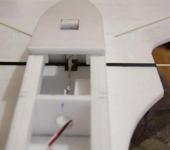 Да, сначала я делал канарды управляемыми, на фотке в принципе понятно как. Вешал эту серву на отдельный канал и микшировал с РВ на тумблер флаперонов. В одном положении они отклонялись синфазно, в другом противофазно, и расходы были разные. Иными словами первое положение для хариера, второе - для лучшей вертлявости. Ее увеличения я сильно не заметил, а вот на харьке устойчивось лучше. После очередной неудачной посадки вклеил канарды намертво, но прорезал флапероны. Микширов задействовал много, чтобы правильно работали, но вертлявости добавило прилично, несмотря на то, что УВТ нету. На второй фотке флапы в одном из посадочных режимов. Поставил другие моторчики (2600 об/в, 38 гр.), при взлетном весе 1060 грамм на полном газу уходит свечкой вверх, но основной режим полета на 60-75 % газа, акков хватает на 5-6 минут.